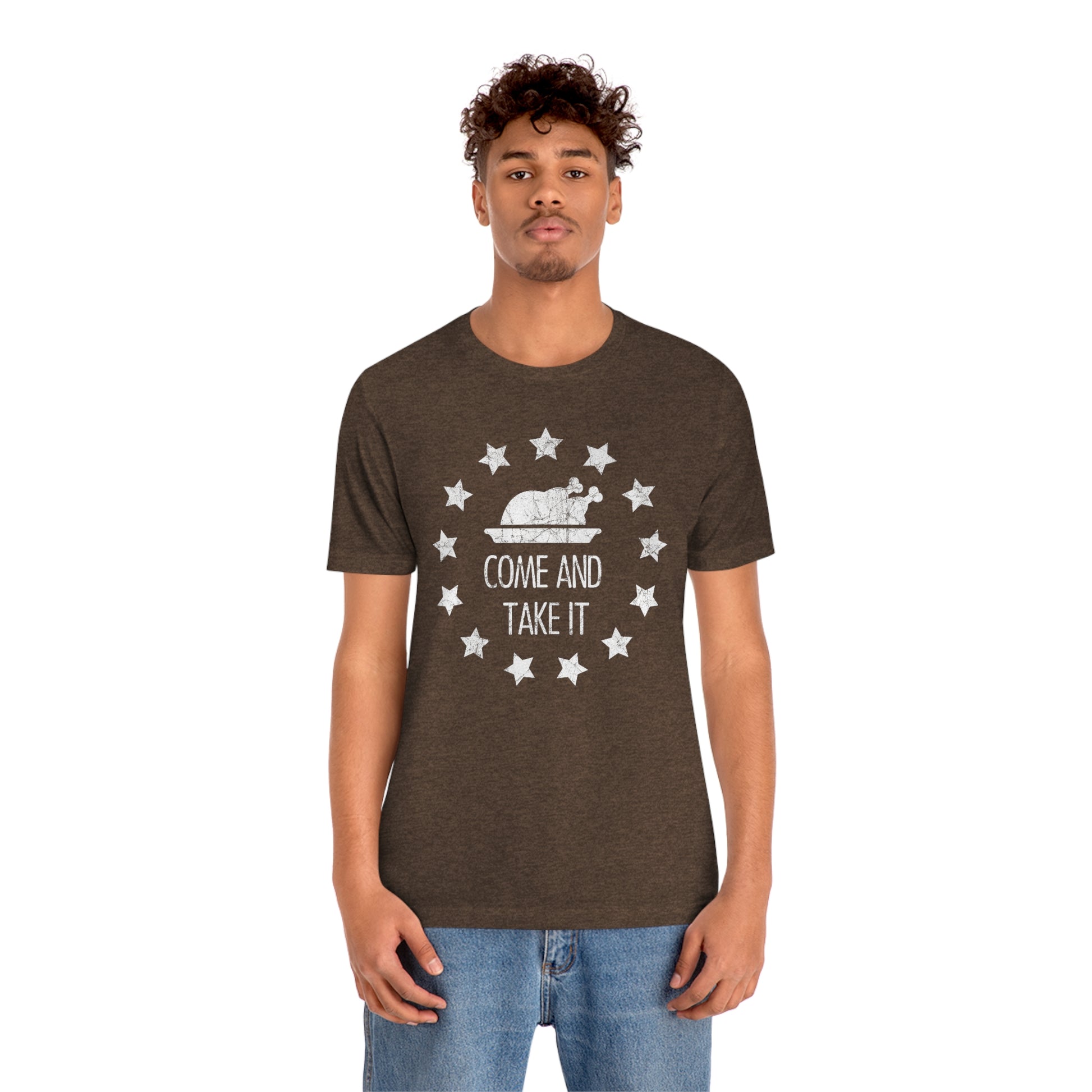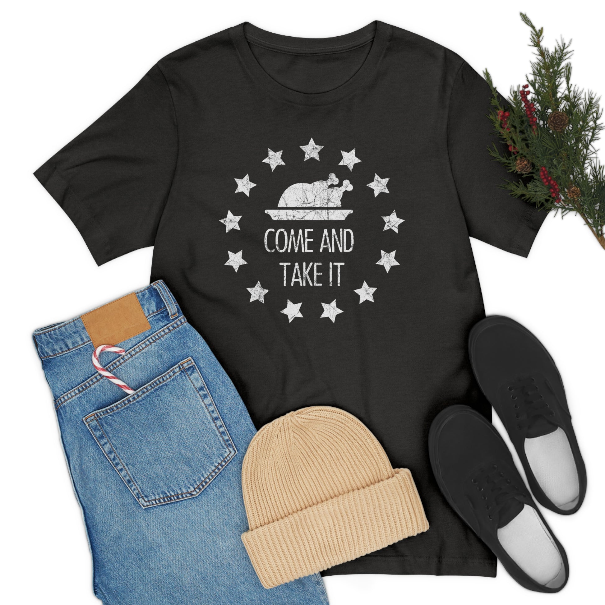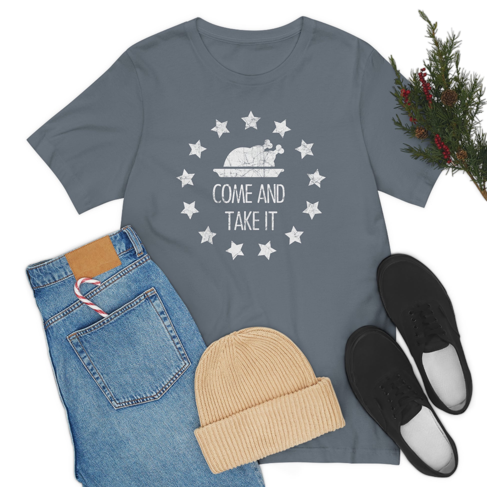 Thanksgiving -- Come and take it! This updated unisex essential fits like a well-loved favorite. Super soft cotton and excellent quality print makes one to fall in love with it over and over again.