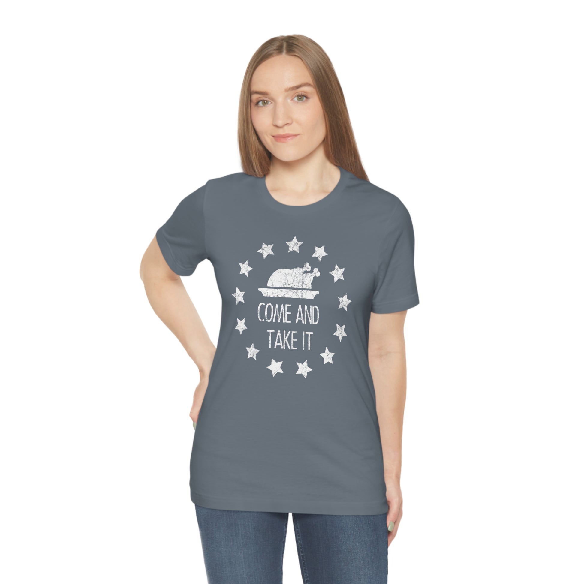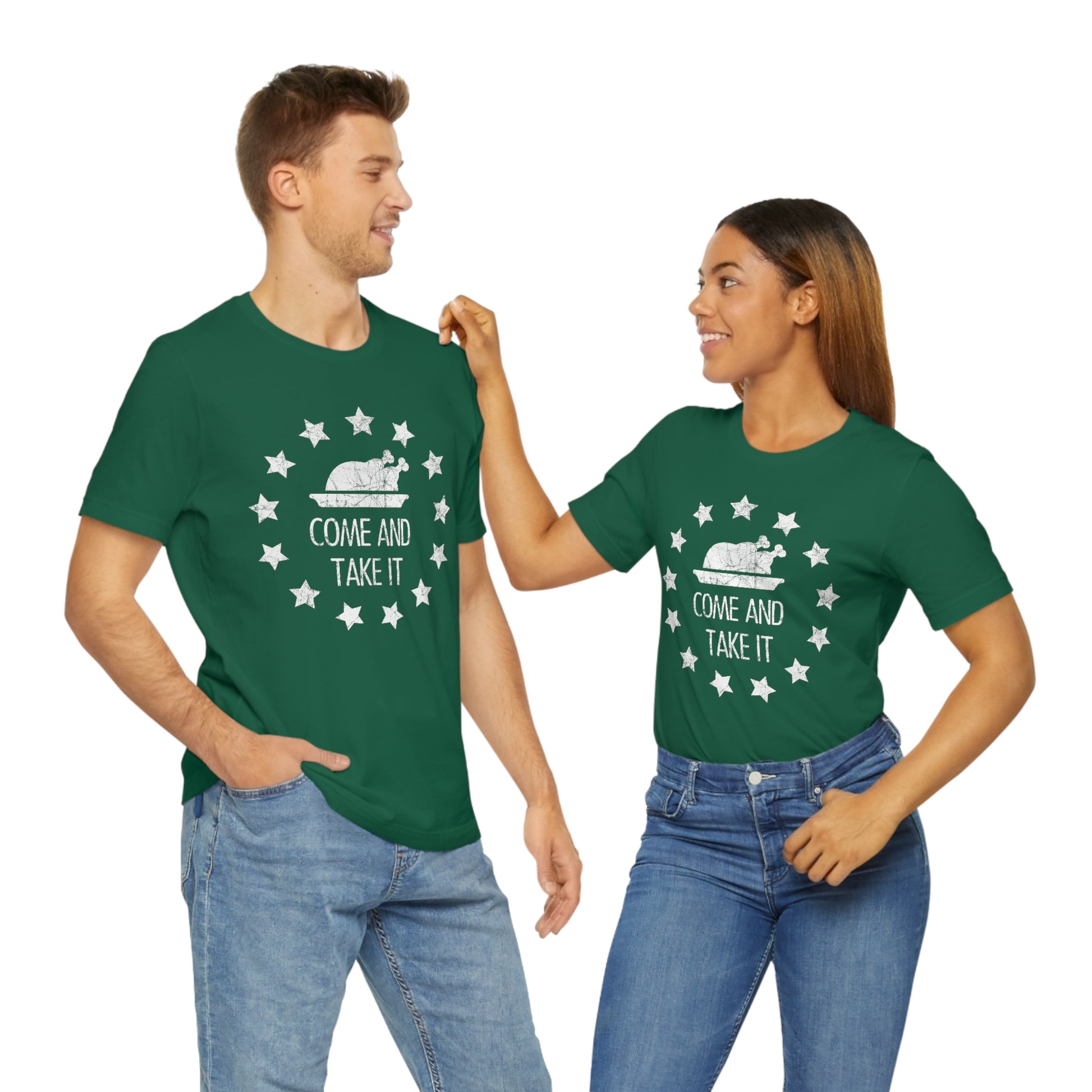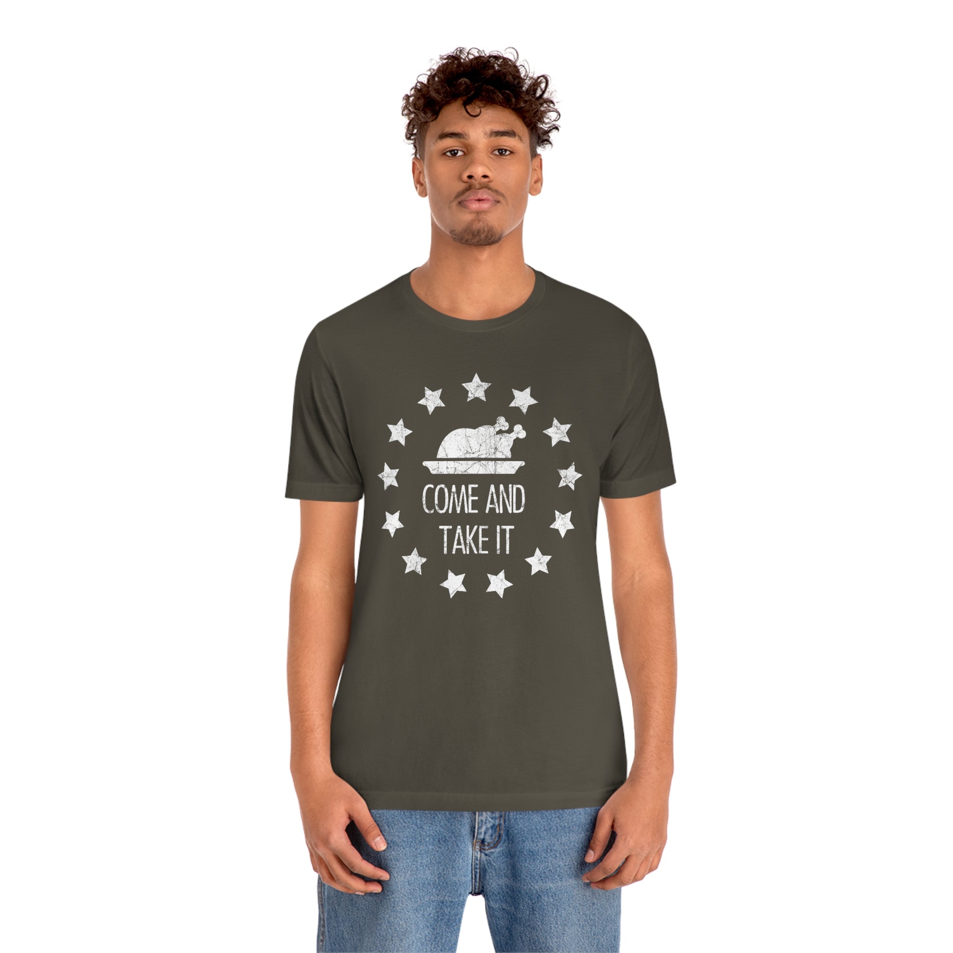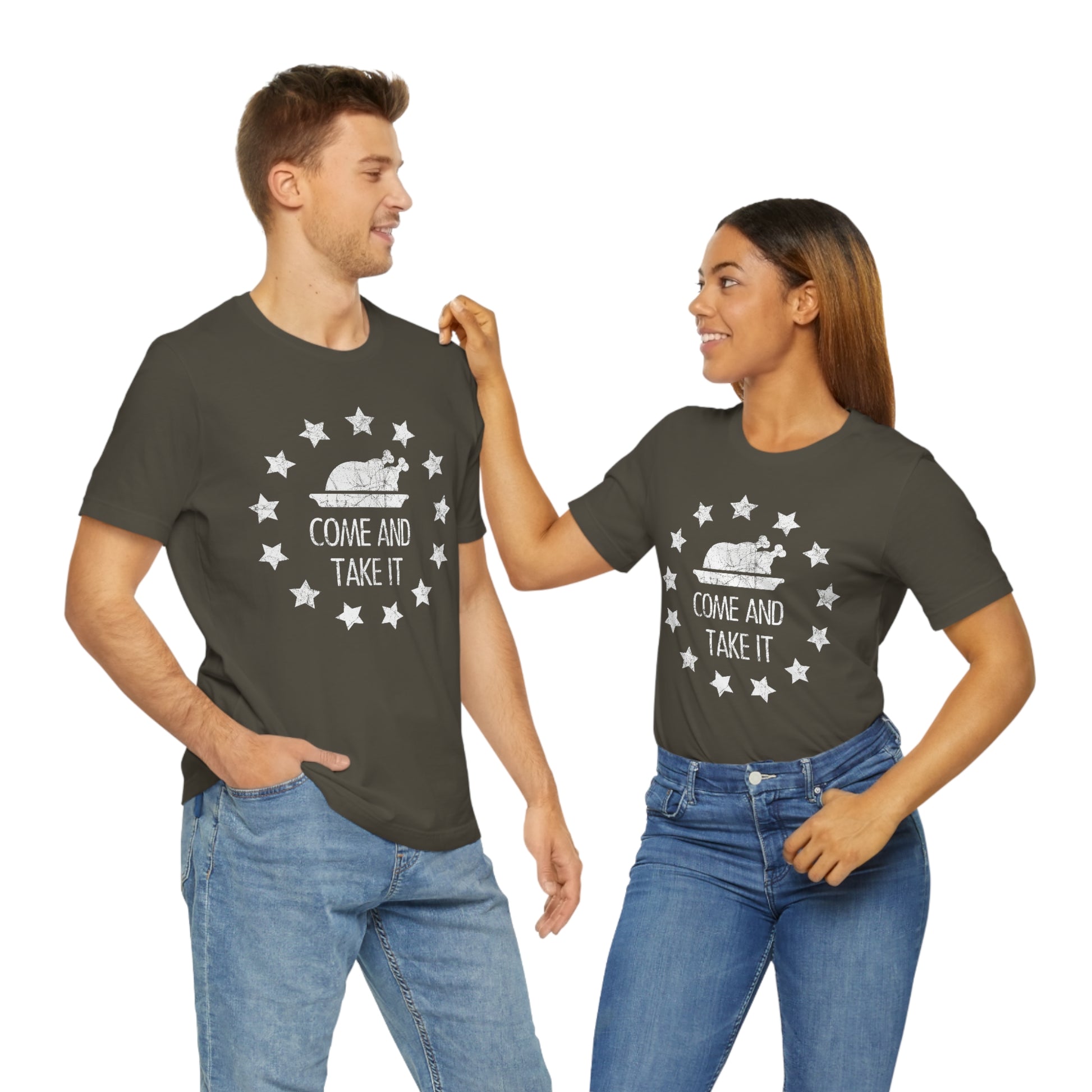 Thanksgiving -- Come and take it! This updated unisex essential fits like a well-loved favorite. Super soft cotton and excellent quality print makes one to fall in love with it over and over again.