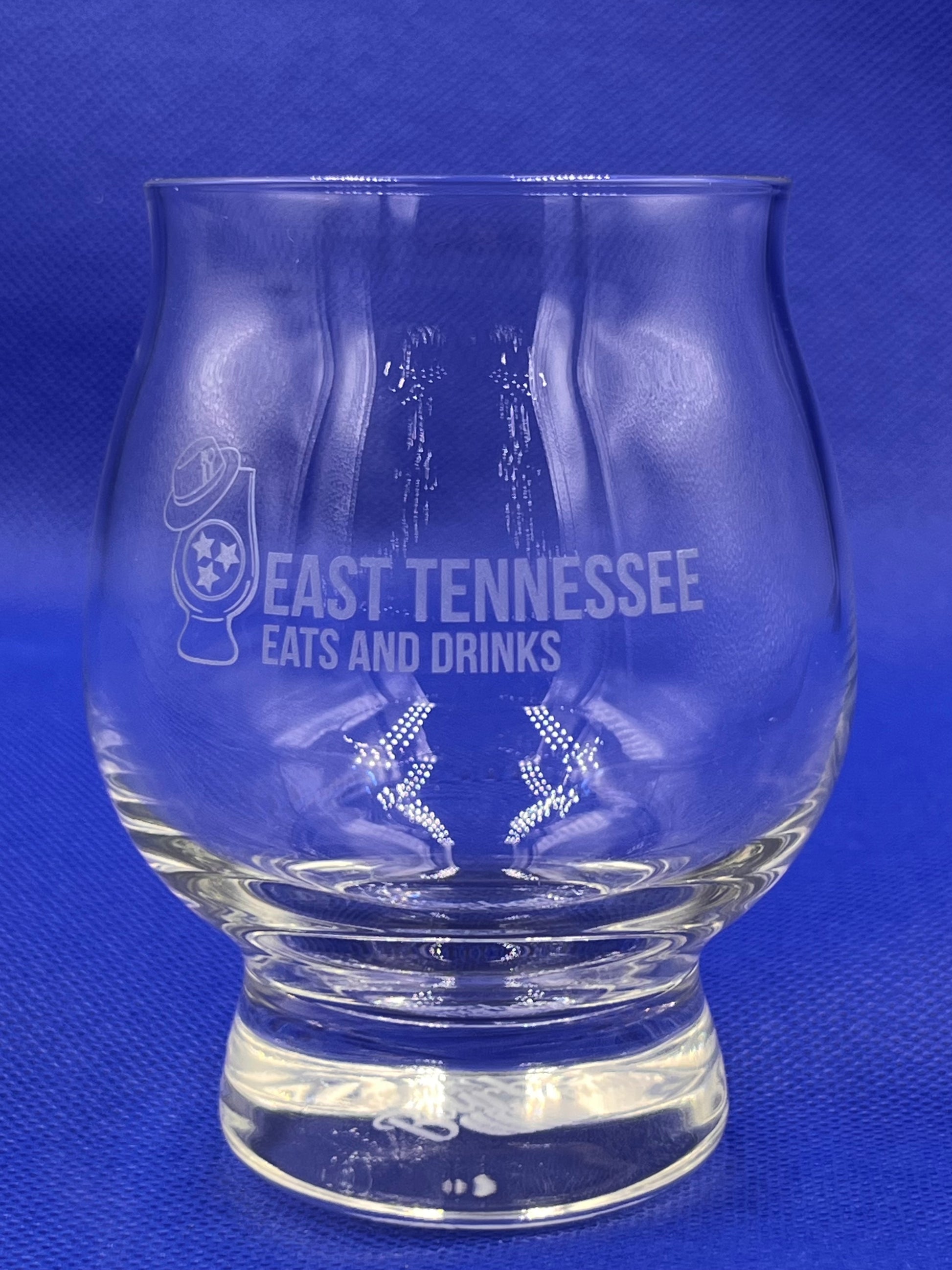Drink your whiskey/whisky/bourbon/spirit of choice in this East Tennessee Eats And Drinks glass etched logo’d Libbey glass! The Libbey is the OFFICIAL glass of the Kentucky Bourbon Trail! The specialized shape allows for aroma/nosing to the fullest. Appreciate your Whisky. And do it in style with your favorite foodie brand logo custom etched into the glass. Cheers!